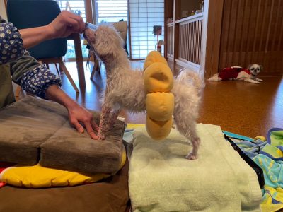 高齢により自分にでは立ち上がることができず飼い主さんの介助無しでは排泄の際は、横に倒れてしまい思うように排泄ができなくなってしまったマルチーズ。筋力が弱ったことで前後足が左右に大きく開いてしまい立ち上がれないため、リハビリとマッサージ、整体を取り入れた施術をおこないました2〜3ヶ月後には自力で立ち上がる事ができるようになった事で、立ったまま排泄ができるようになりました!